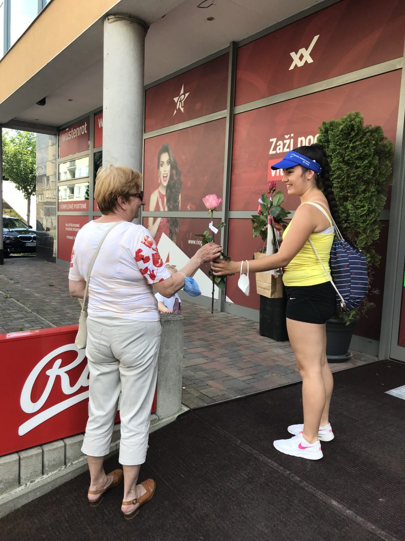 Mladí ľudia o svojom zážitku píšu: „V stredu sme prevzali zo sídla RMŽK ruže s motivačnou myšlienkou a naplánovanou trasou sme rozdávali náhodným ľuďom ruže. Zameriavali sme sa hlavne na ľudí, ktorí boli očividne uponáhľaní, vyzerali mrzuto, mamičky s deťmi, starý ľudia a pod. Ich výrazy boli prekvapujúce a neveriacky od nás prijali túto neobyčajnú radosť. Stalo sa aj že bola naša myšlienka odmietnutá. Okrem náhodných okoloidúcich sme boli potešiť aj pracovníkov ŽSK a samozrejme že sme nechali ružu aj našej pani županke. Bola to pre nás nová a veľmi príjemná skúsenosť. Týmto spôsobom sme mali možnosť urobiť aj malý prieskum – ľudia sú naučení že nič nie je zadarmo, majú problém prijímať a zastaviť sa. Veríme, že myšlienku ktorú si našli na ruži ich určite potešila a možno sa konečne zastavili a usmiali sa na svet. Obohatil nás hlavne fakt, že úsmev ľudí bol v tom momente v našich rukách. Bolo to krásne.“