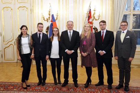 Foto: Dominik s kolegami z kancelárie prezidenta spoločne s prezidentom SR; zdroj: archív D.Porvažník