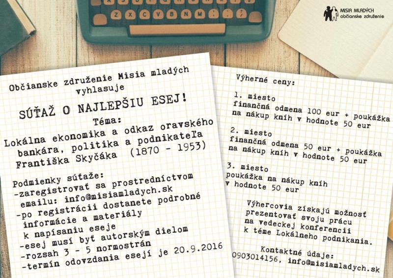 View Larger Image Ponuka pre stredoškolákov z OZ Misia mladých OZ Misia mladých , členská organizácia RMŽK pozýva stredoškolákov do zaujímavej esejovej súťaže. Pridaj sa aj ty: 25. júna, 2016| Zdieľať článok FacebookTwitterRedditLinkedInWhatsAppPinterestEmail Súvisiace príspevky Festival študentskej podnikavosti- pozvánka Generácie spolu: V Ružomberku ožil dialóg medzi mladými a seniormi Pozvánka: Ready do práce: Most medzi školou a zamestnaním Ekopolis Nová grantová výzva Most k zamestnaniu mladých